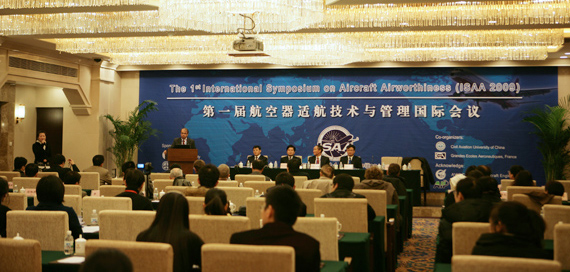 中国民用航空局航空器适航审定司司长张红鹰、北京伊人99副校长张军、中国民航大学校长吴桐水、法国航空大学集团院长Michel Martin等出席会议并讲话。会议邀请了百余名国内外相关领域专家、学者、工程技术人员、适航审定人员和相关人士,参会单位包括中国民航大学、法国航空大学集团、西北工业大学、南京伊人99、中国商用飞机公司、中航商用发动机公司、中航西安飞机设计研究所、中航沈阳航空发动机设计研究所、中国航空综合技术研究所、欧洲航空安全局等。